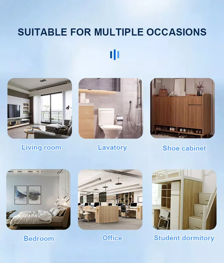 adalah produk yang direka khusus untuk meningkatkan kualiti udara dalaman. Ia boleh meningkatkan bau dalaman, formaldehid, PM2.5 dan bahan -bahan berbahaya yang lain, supaya anda bernafas lebih murni dan segar. Penyegar udara sesuai untuk senario berikut: