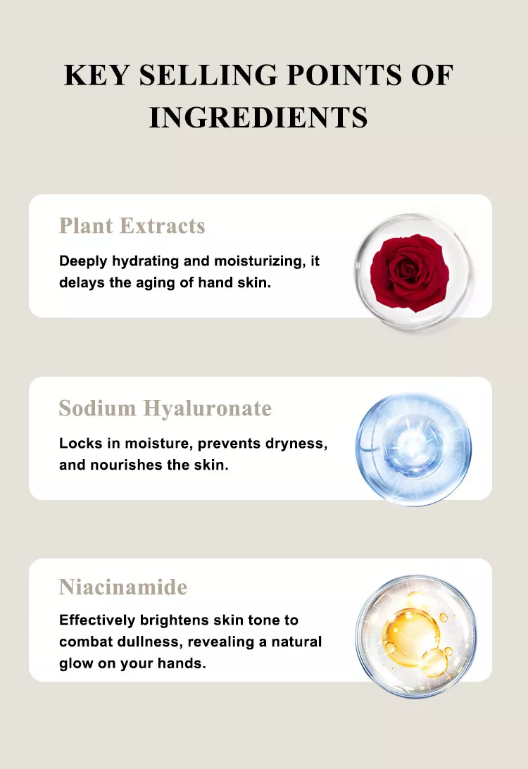Selepas menggunakan penyerapan cepat krim tangan pelepasan segera, kulit menjadi lebih halus, garis halus dikurangkan, dan kandungan air kulit meningkat. Krim tangan sesuai untuk pelbagai kesempatan dalam kehidupan seharian, terutama bagi mereka yang sering mencuci tangan mereka, bersentuhan dengan agen pembersih, atau terdedah kepada persekitaran yang kering dan sejuk. Sama ada untuk penjagaan rumah, tetapan pejabat, atau aktiviti luaran, penggunaan krim tangan tepat pada masanya melindungi tangan anda dan mengekalkan kulit yang sihat dan muda.